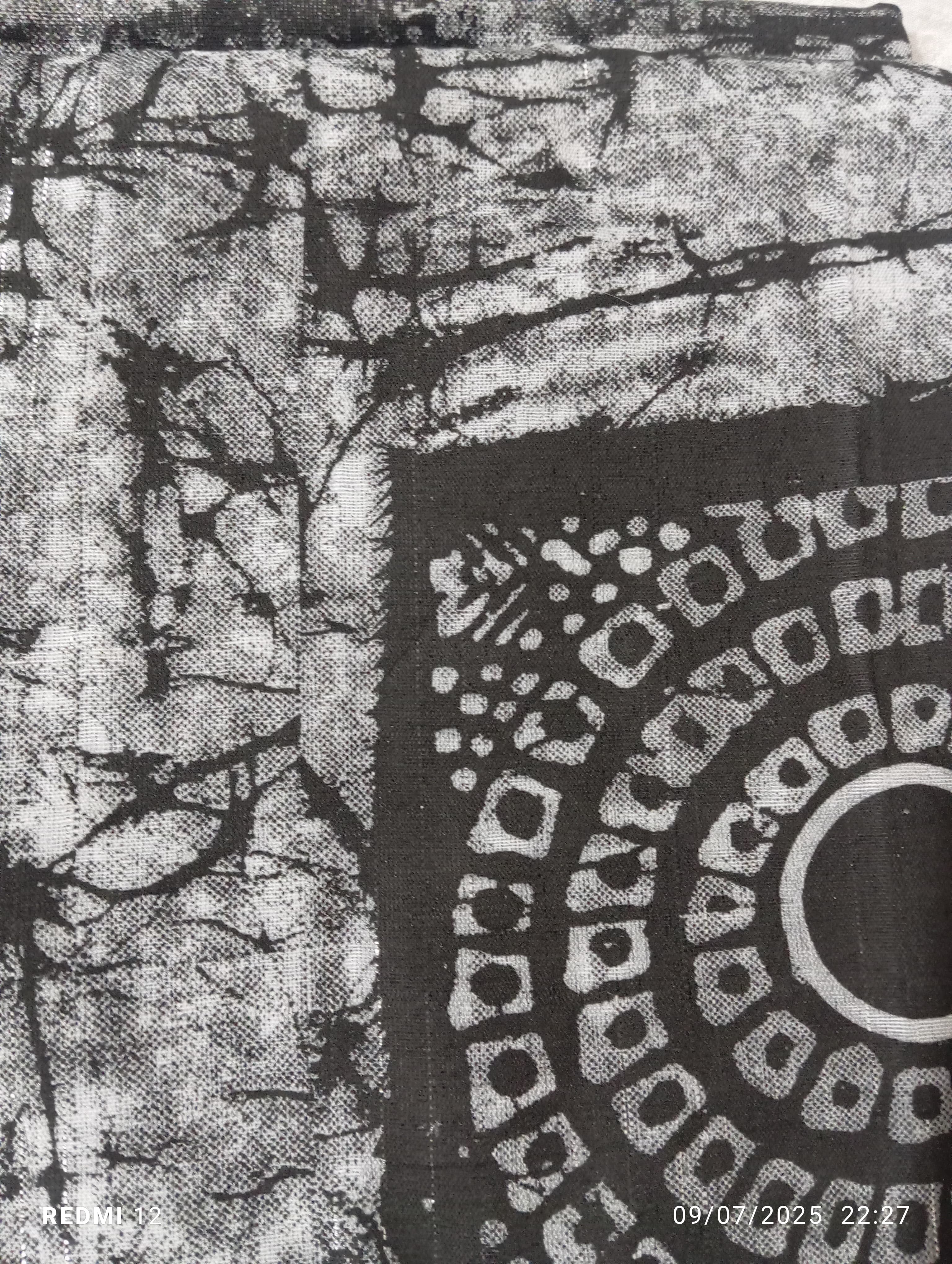 Batik printed with zari threads. 5 cubits ling.Cotton.